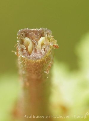 Sores brièvement oblongs ou arrondis, distincts ou parfois à la fin confluents, sur 2 rangs parallèles à la nervure médiane des lobes ; indusie oblongue ou arrondie. conforme au sore, fixée par le côté à une nervure, s'ouvrant par son bord interne frangé ou cilié, persistante ou très caduque.
